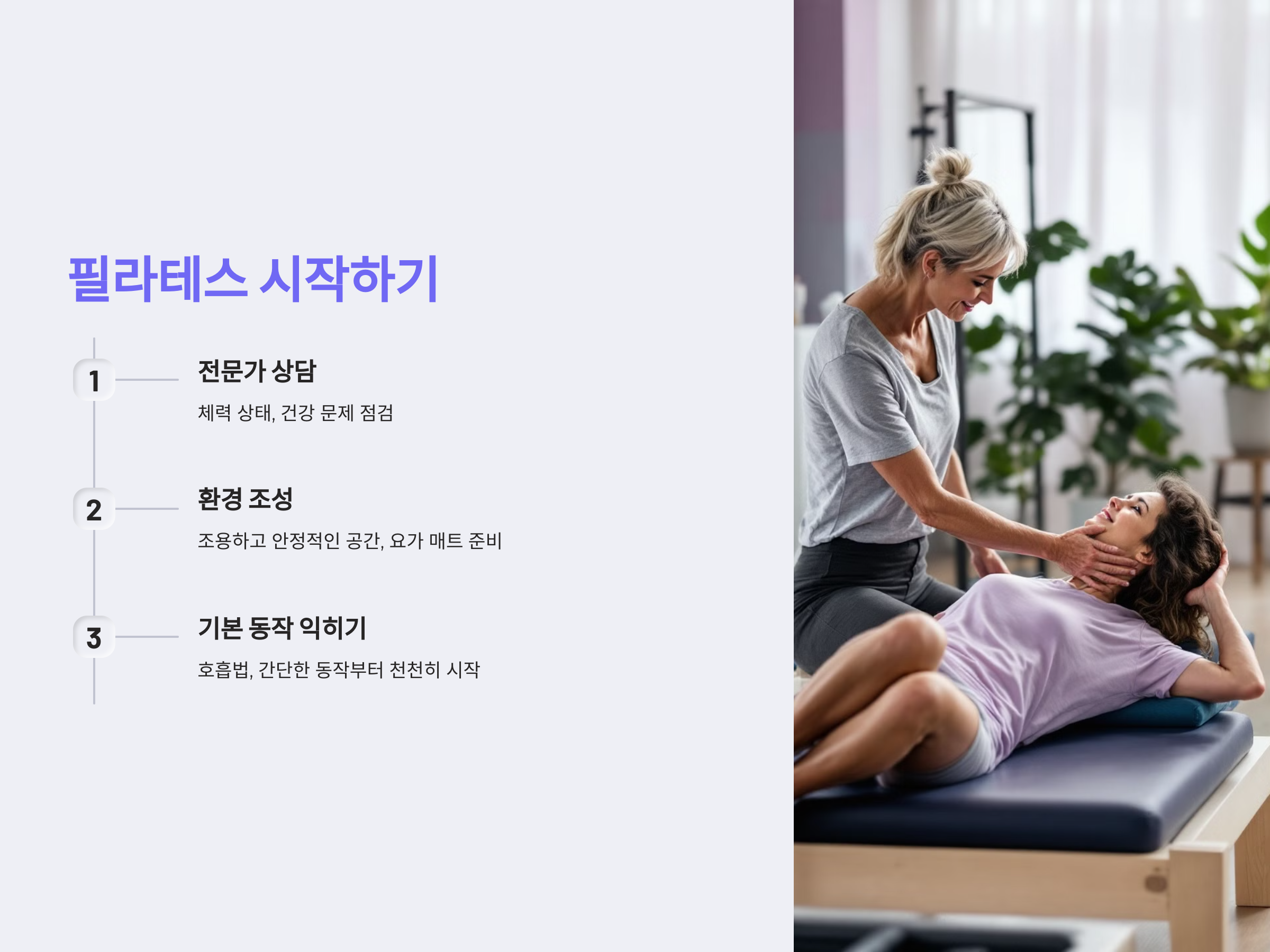 시니어가 필라테스를 시작할 때는 올바른 방법과 준비가 중요합니다. 다음은 운동을 안전하게 시작하기 위한 필수 단계입니다.
