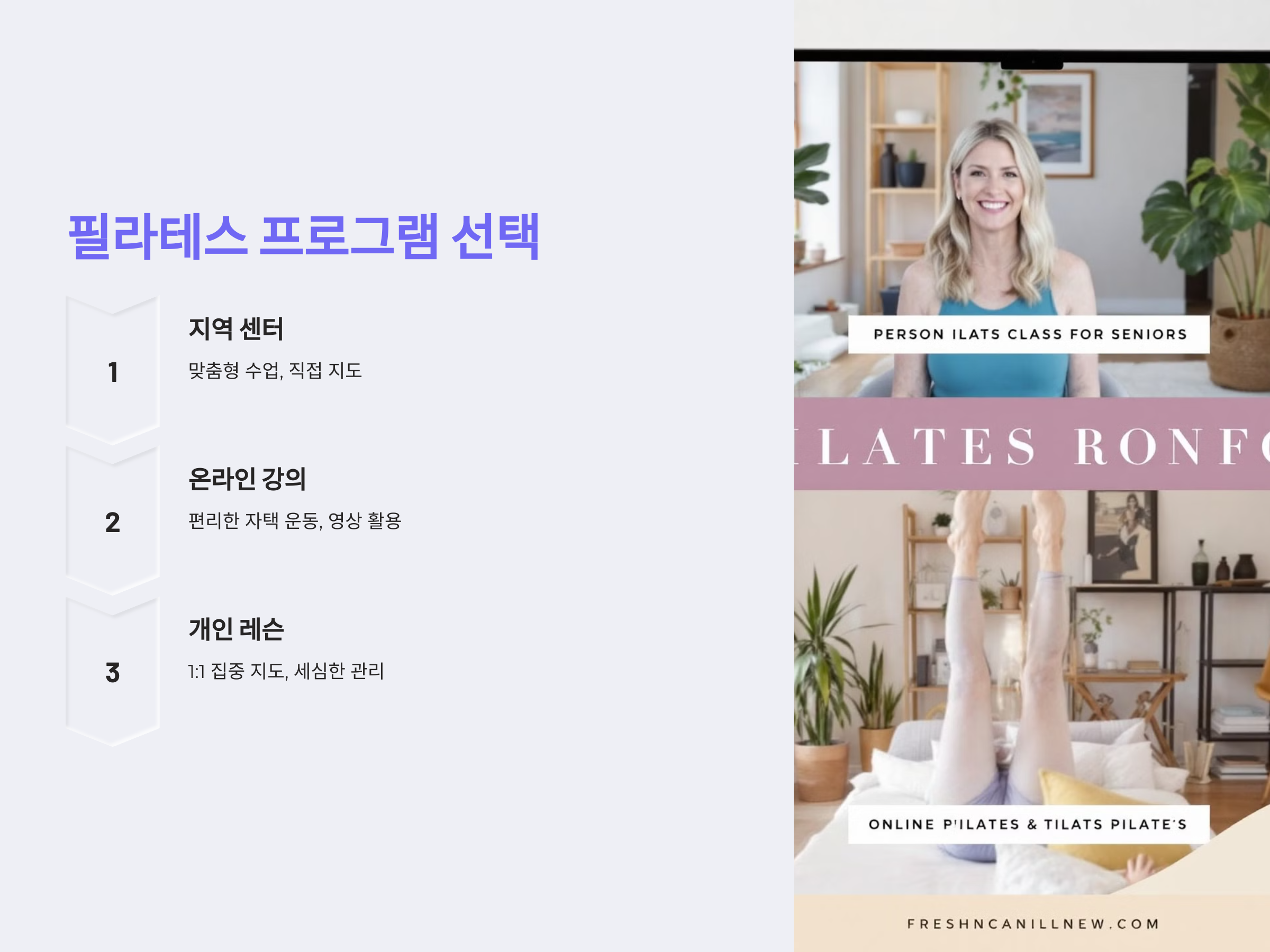 - 지역 필라테스 센터: 개인의 건강 상태에 맞는 맞춤형 수업 제공
