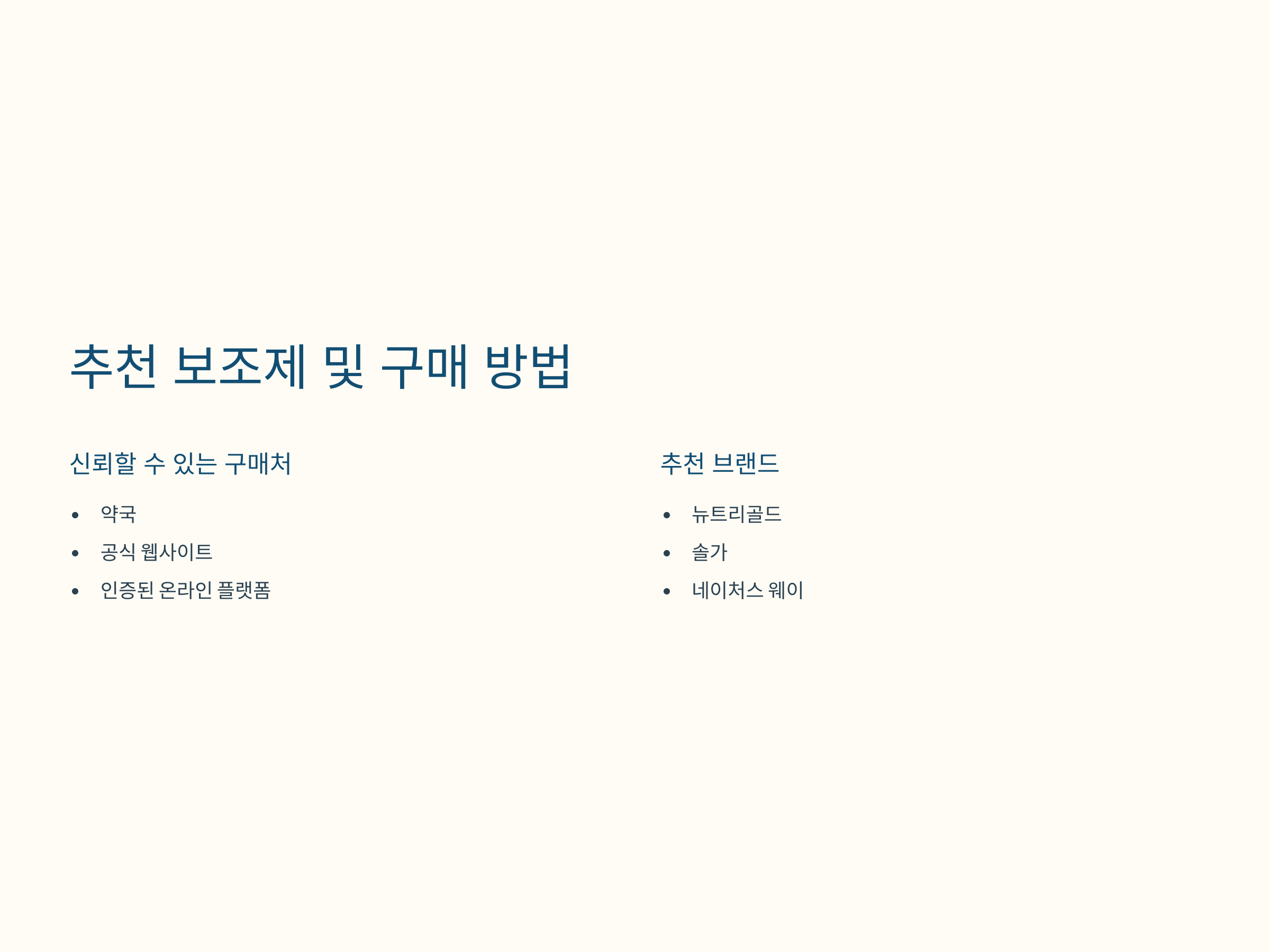 추천 보조제 및 신뢰할 수 있는 구매 방법