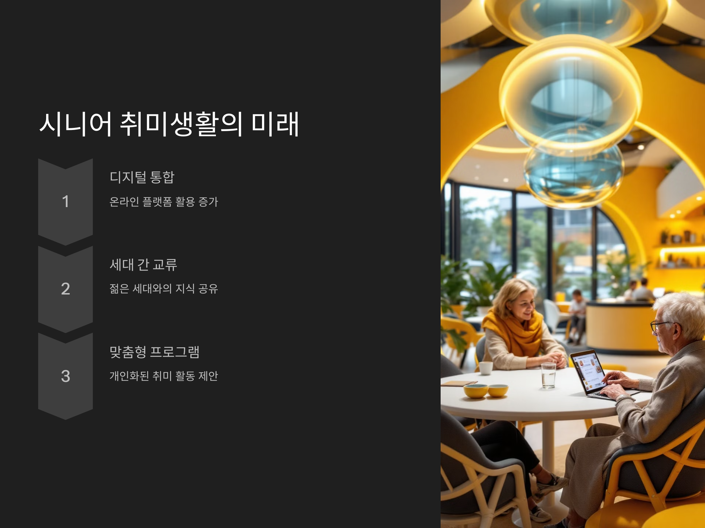 취미는 개인의 행복을 넘어 사회적 가치를 만듭니다. 지역사회에서의 봉사활동이나 동호회 참여는 사회적 연결성을 강화합니다. 특히 시니어층은 자신의 경험과 지혜를 공유하며 젊은 세대와 소통할 기회를 가질 수 있습니다.