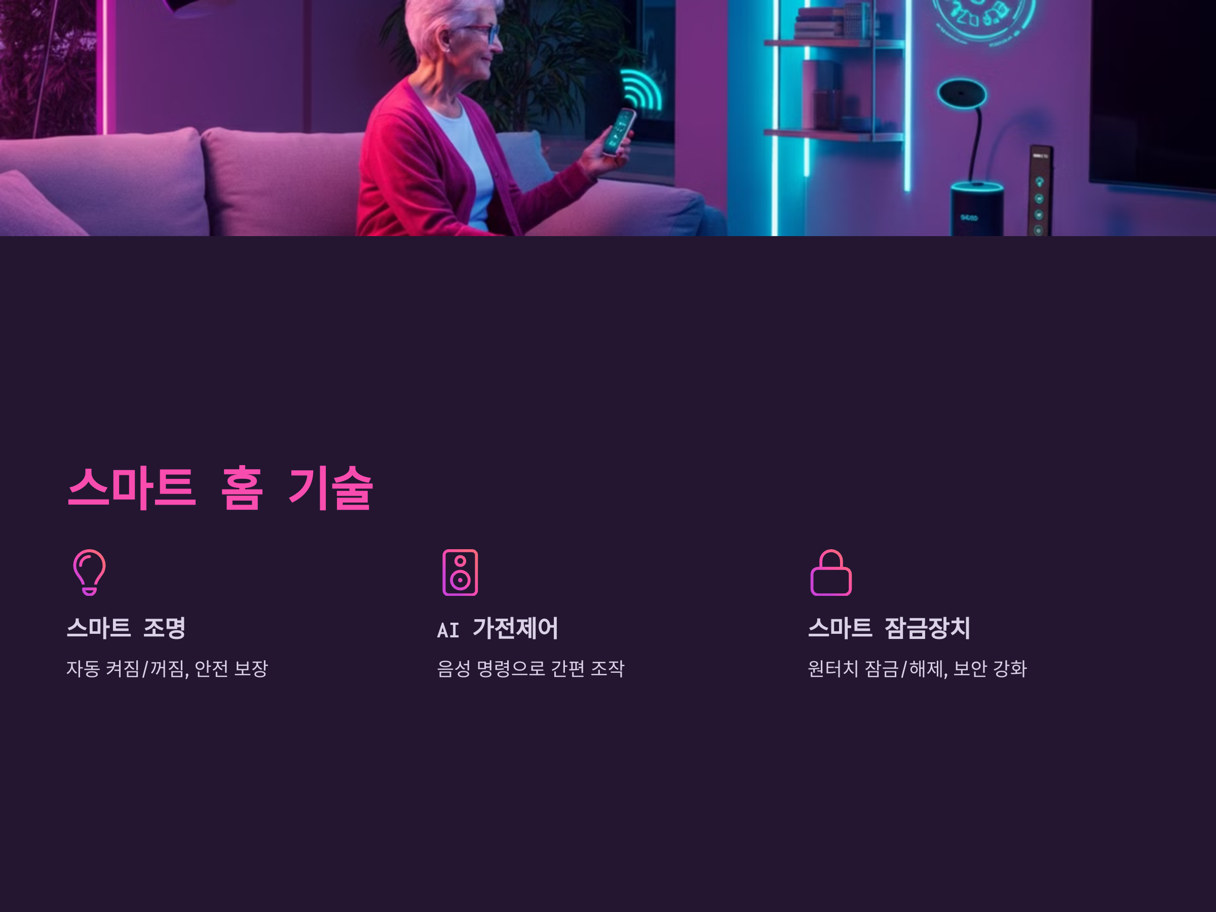 스마트 홈 기술은 시니어가 집안에서 더욱 안전하고 편리하게 생활할 수 있도록 돕습니다. 다양한 스마트 가전제품은 손쉬운 제어와 자동화 기능을 제공하며, 특히 독립 생활을 지원하는 데 필수적인 역할을 합니다.