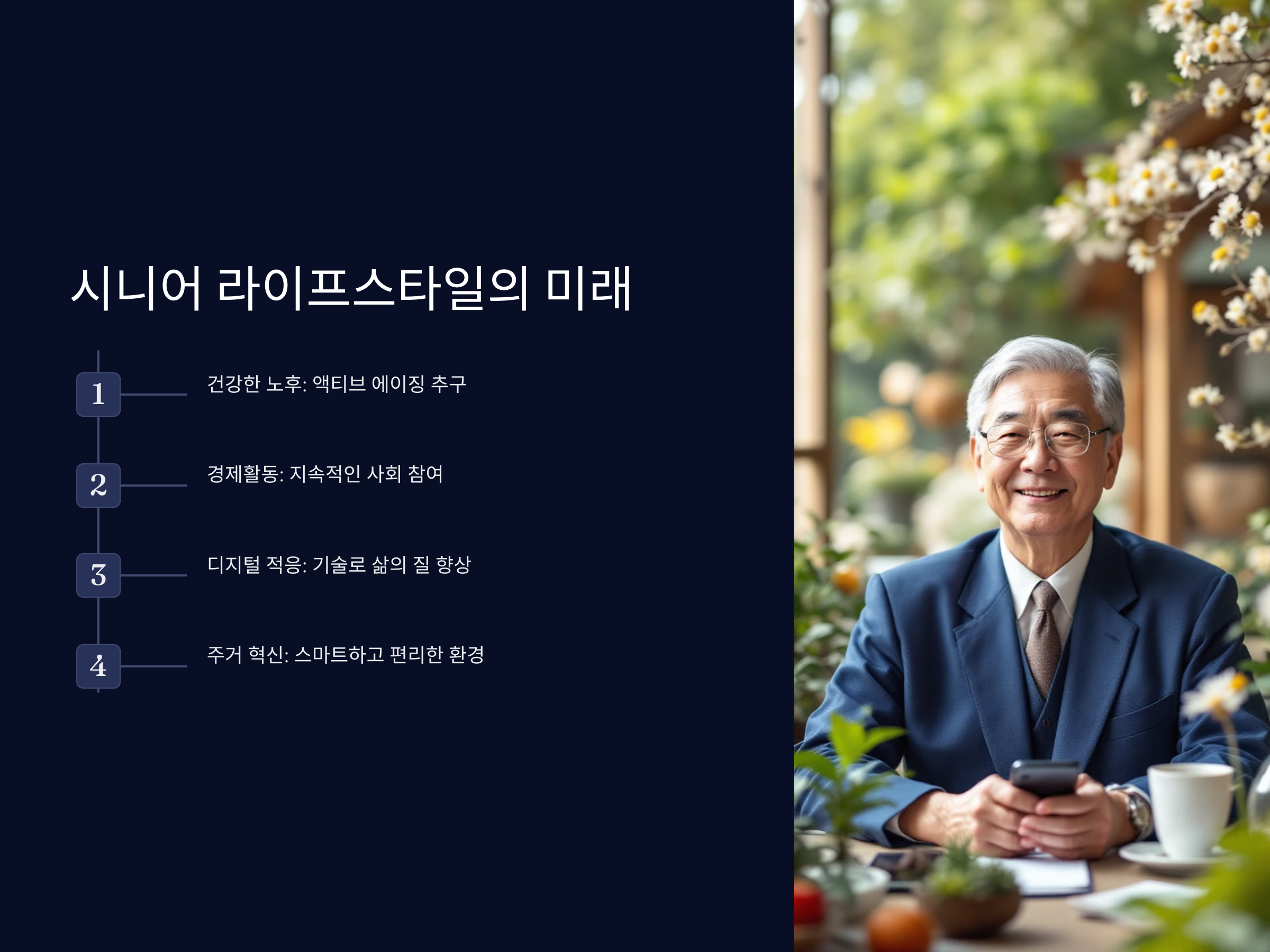시니어 세대의 라이프스타일 변화는 기업들에게 새로운 기회를 제공합니다. 이들의 요구를 충족시키는 상품과 서비스가 향후 시장을 주도할 가능성이 높습니다.