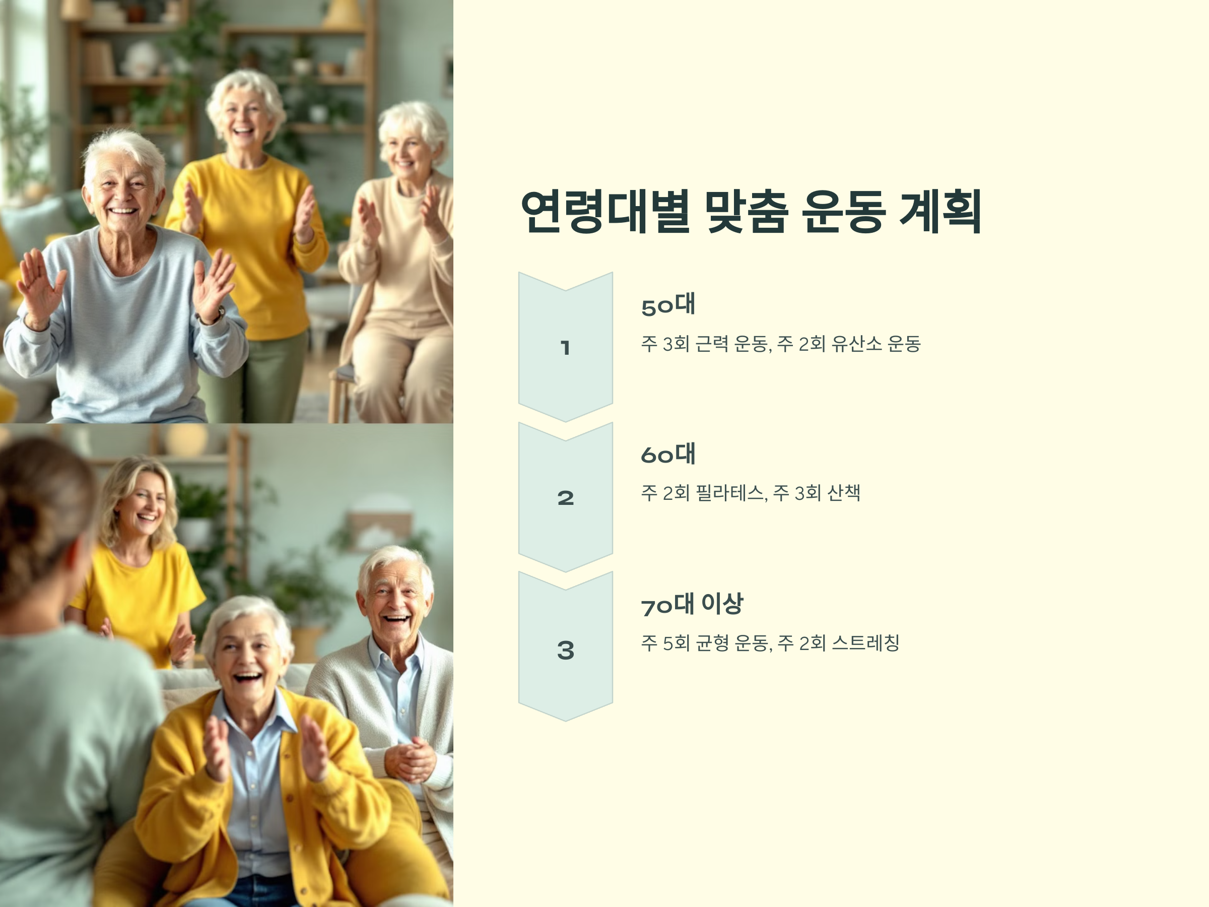 니어가 건강하고 활기찬 노년을 보내기 위해서는 나이에 맞는 운동이 필수입니다. 50대에는 근력을 강화하고, 60대에는 유연성을 높이며, 70대 이상에서는 균형 감각을 유지하는 운동을 중점적으로 해야 합니다. 이 글에서는 연령대별로 적합한 운동법을 체계적으로 소개하여 부상 없이 효율적으로 건강을 관리할 수 있도록 돕습니다.