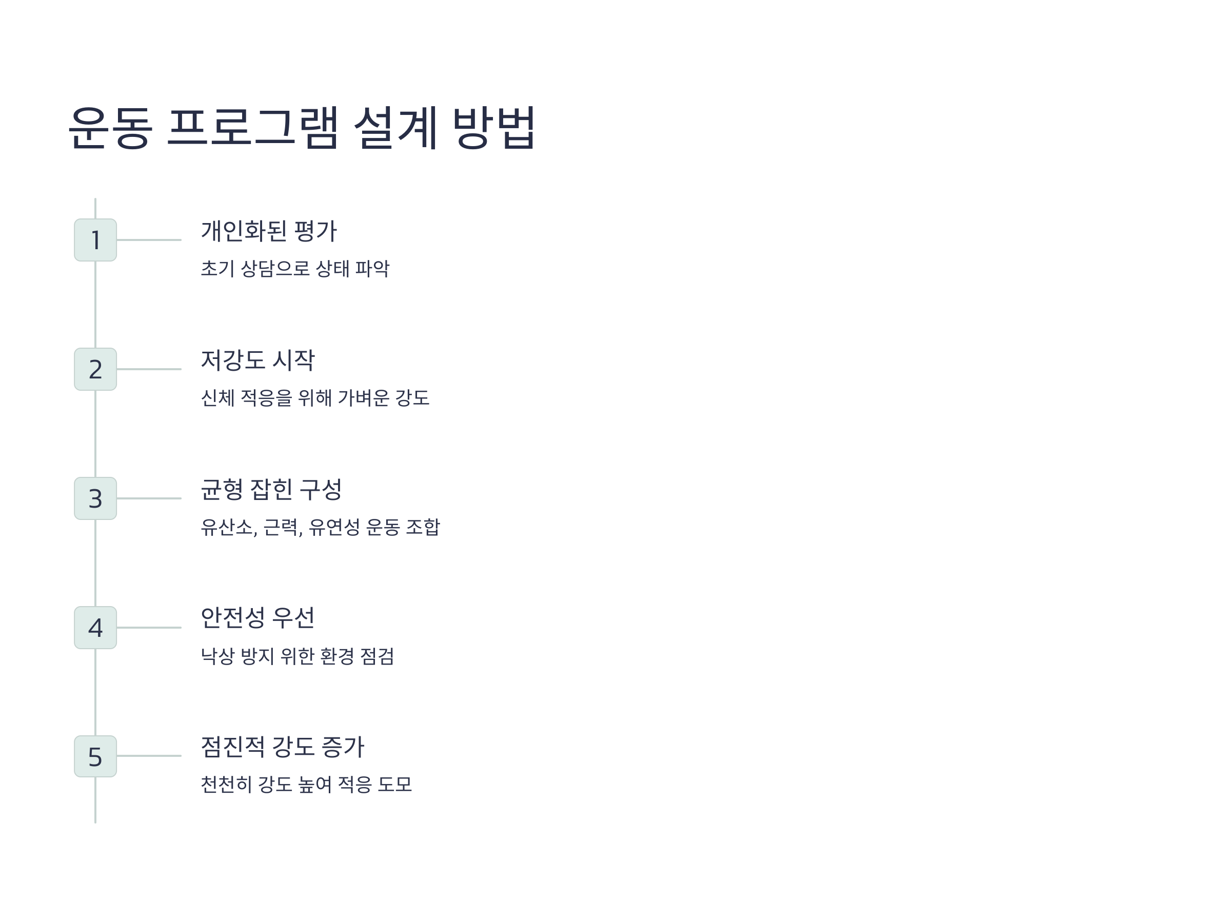효과적인 시니어 운동 프로그램을 설계하려면 개인별 건강 상태와 목표를 철저히 고려해야 합니다. 다음은 주요 설계 원칙입니다: