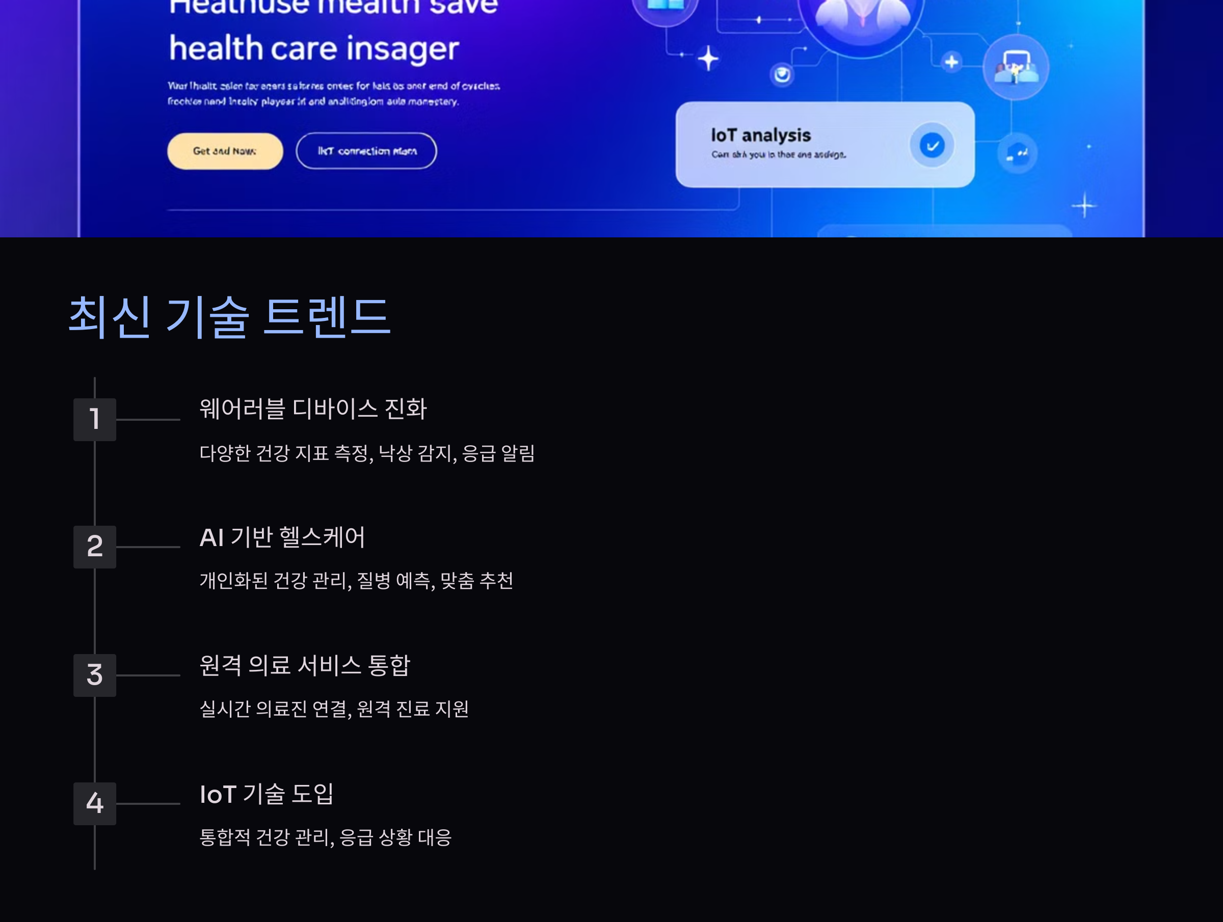 헬스케어 기술은 매년 새로운 혁신을 이루며 시니어 케어에 적합한 방향으로 발전하고 있습니다. 다음은 주목해야 할 최신 기술 트렌드입니다.
