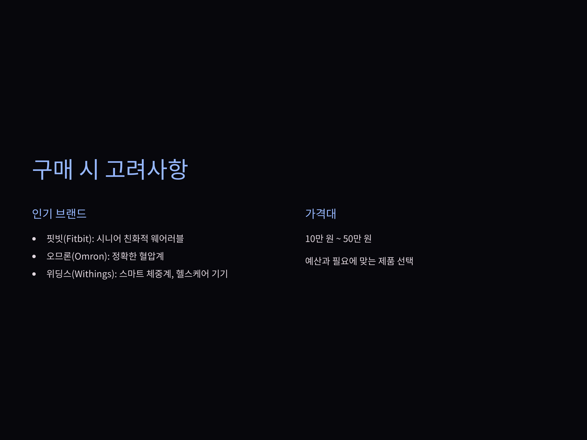 정확한 건강 데이터를 제공하는 기기를 선택하는 것이 중요합니다. 저가형 기기는 데이터 정확도가 낮을 수 있으므로, 검증된 브랜드의 제품을 고르는 것이 좋습니다.