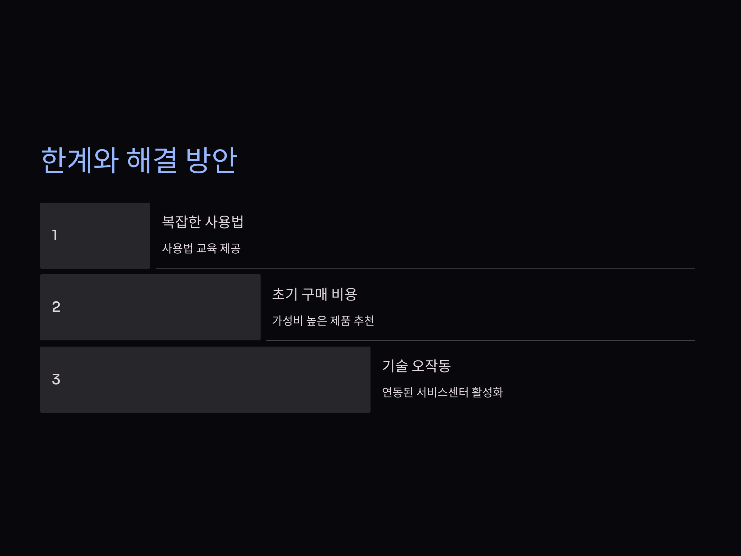 - 초기 구매 비용이 부담될 수 있음.