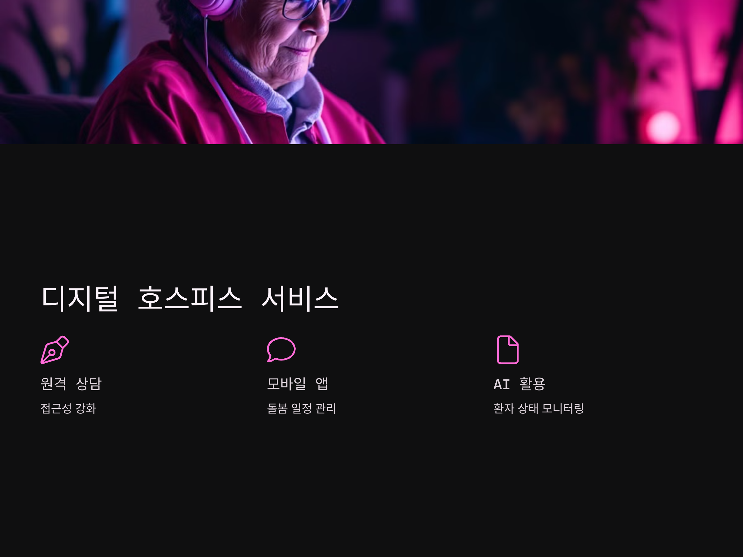 최근 호스피스 서비스는 디지털 기술을 적극 활용하고 있습니다. 원격 상담, 모바일 앱을 통한 관리, AI 기반 돌봄 프로그램 등이 대표적입니다.