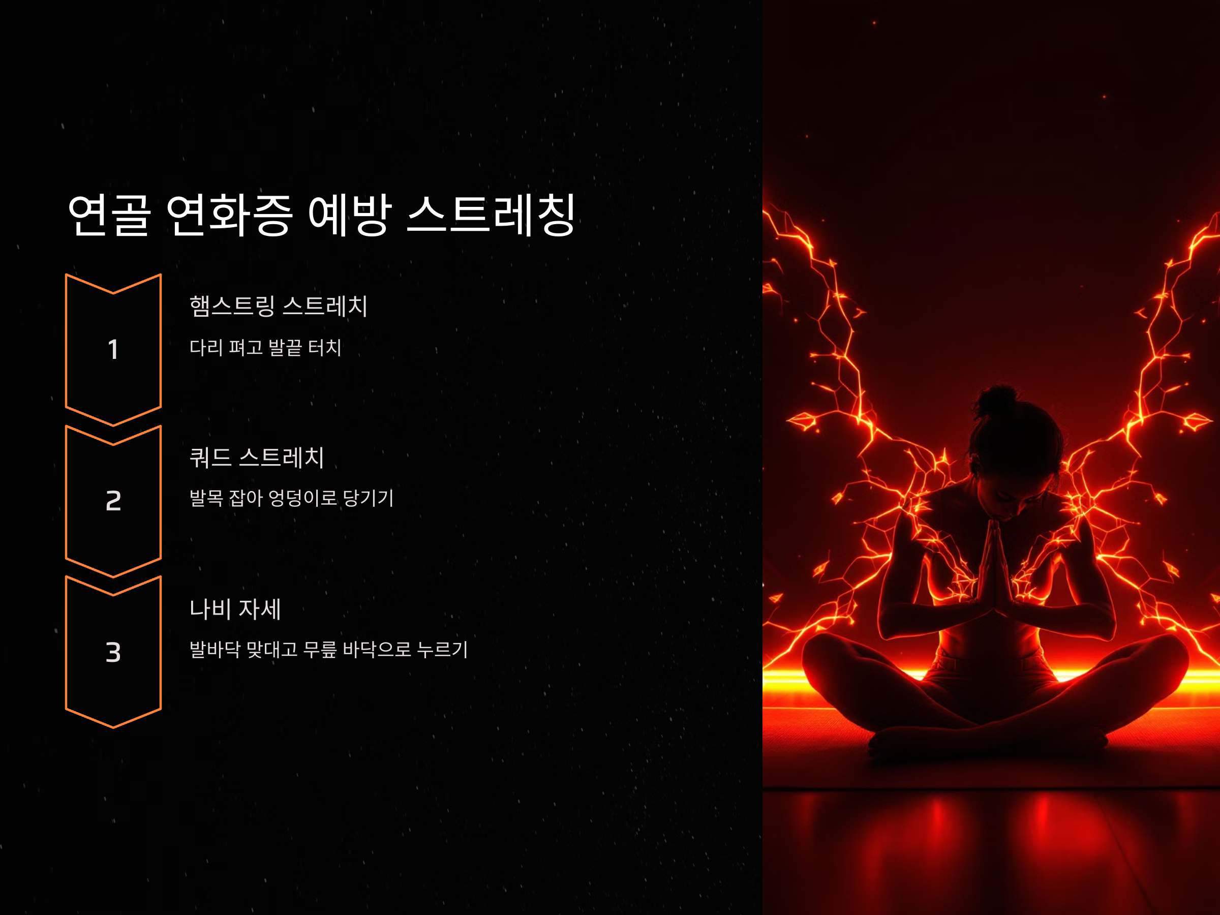 스트레칭은 관절 유연성을 증가시키고 연골 건강에 도움이 됩니다. 다음은 매일 실천할 수 있는 간단한 스트레칭 동작들입니다.