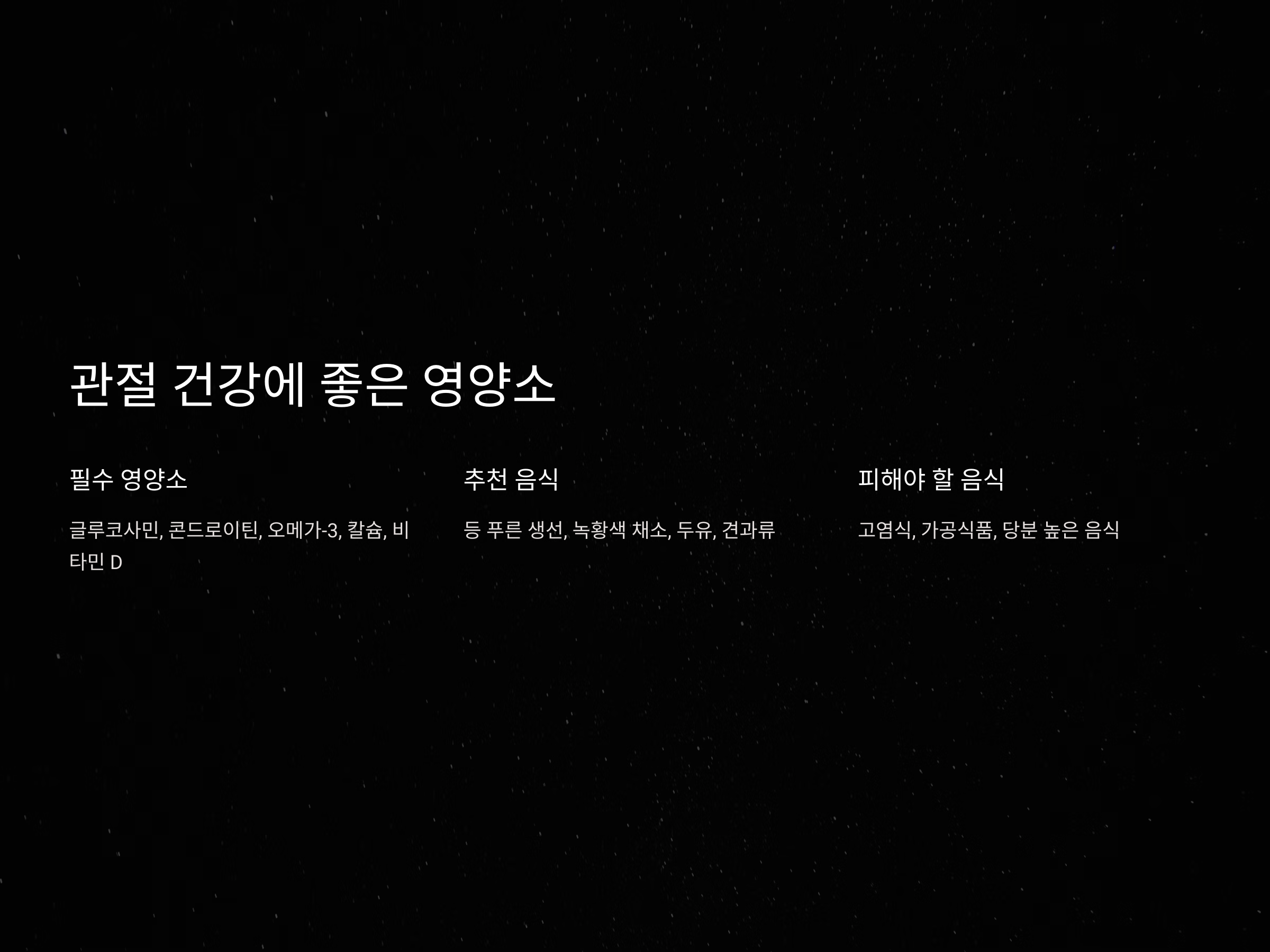 - 글루코사민이나 콘드로이틴 보조제 섭취.