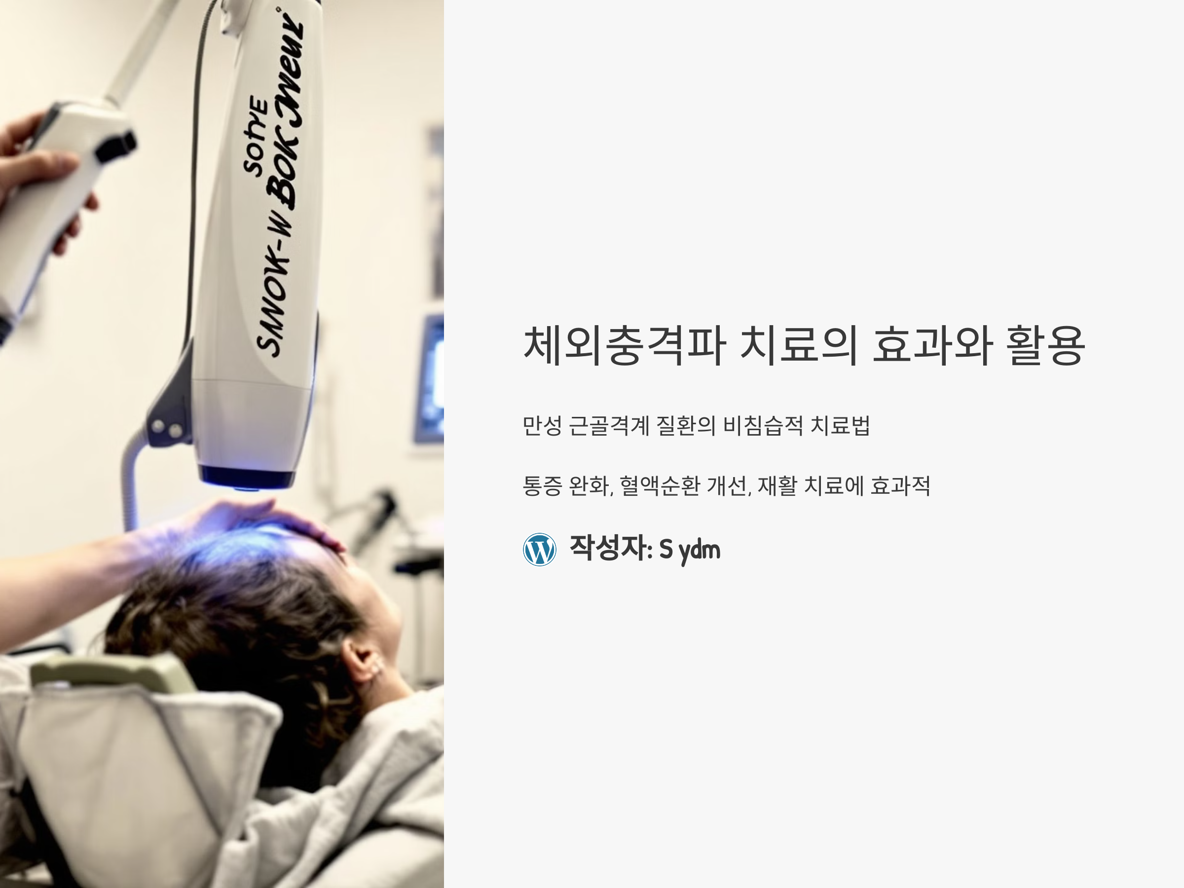 외충격파 치료는 만성 근골격계 질환 치료에 있어 비침습적이고 효과적인 방법으로 알려져 있습니다. 근육, 힘줄, 인대와 같은 연조직의 치유를 돕고 통증을 완화하며, 혈액순환 개선 효과까지 제공해 재활 치료에서도 중요한 역할을 합니다. 특히, 족저근막염, 테니스 엘보와 같은 만성 질환 환자들에게 긍정적인 결과를 보여 많은 이들의 주목을 받고 있습니다. 여기서 치료의 원리와 주요 효과, 그리고 적용 사례를 자세히 알아보겠습니다.