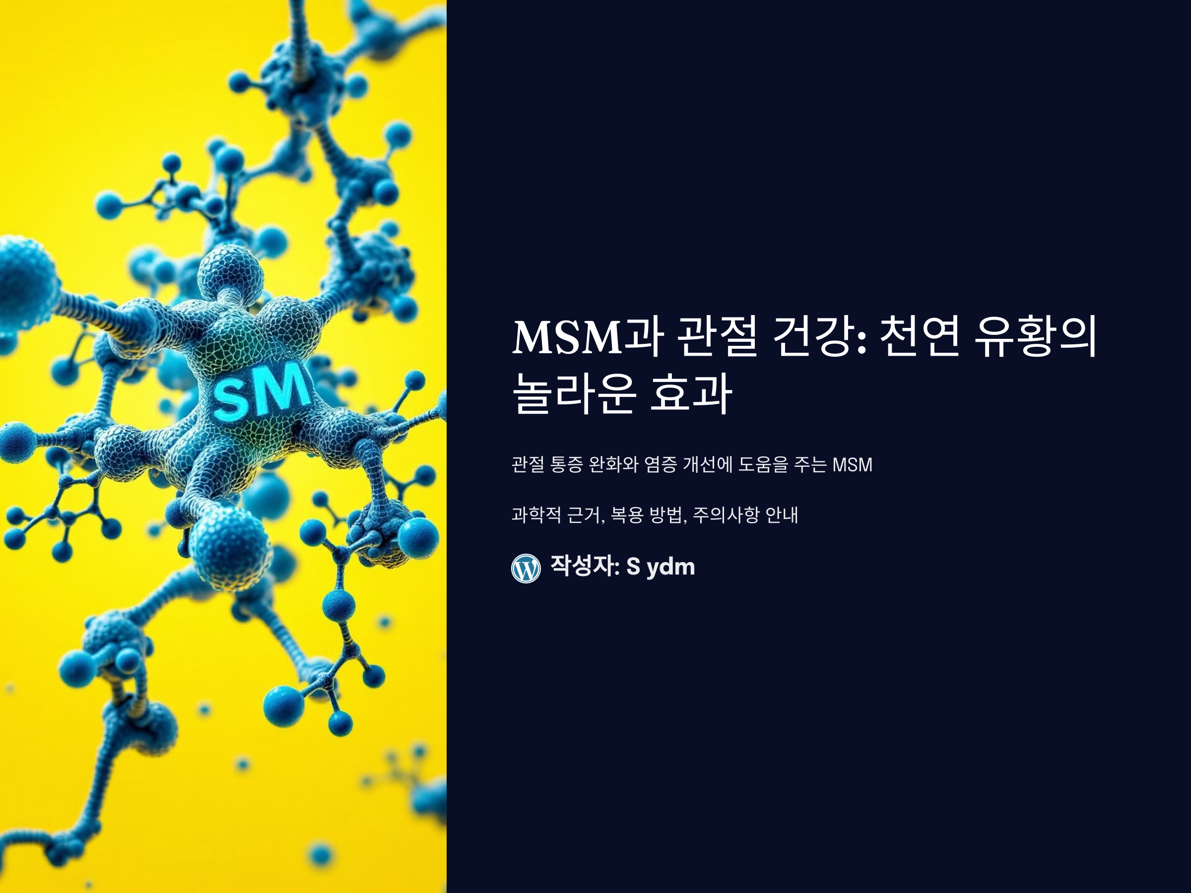 근 관절 건강에 대한 관심이 높아지면서 MSM(Methylsulfonylmethane)이 주목받고 있습니다. MSM은 천연 유황 화합물로 관절 통증 완화와 염증 개선에 도움을 준다는 연구 결과가 많아지고 있습니다. 특히, MSM은 관절의 유연성을 높이고 운동 후 회복을 돕는 것으로 알려져 있습니다. 이 글에서는 MSM이 관절 건강에 미치는 영향을 과학적 근거와 함께 살펴보고, 올바른 복용 방법과 주의 사항을 안내합니다.